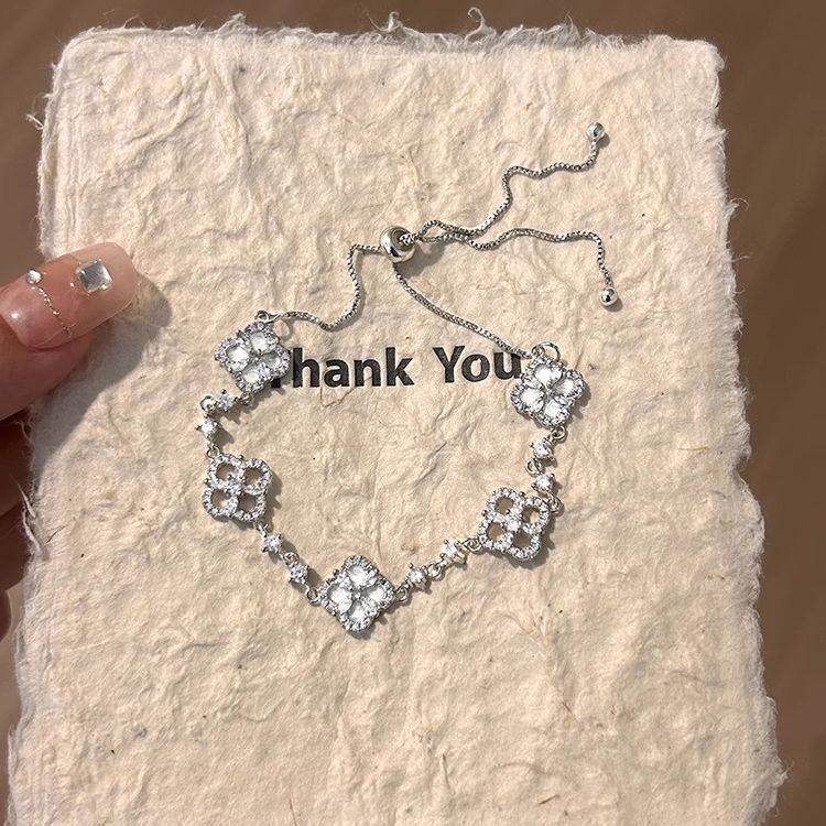 Full Diamond Four-Leaf Clover Zircon Bracelet, Light Luxury, High-End, Niche, Elegant, Adjustable 2025 Popular Bracelet