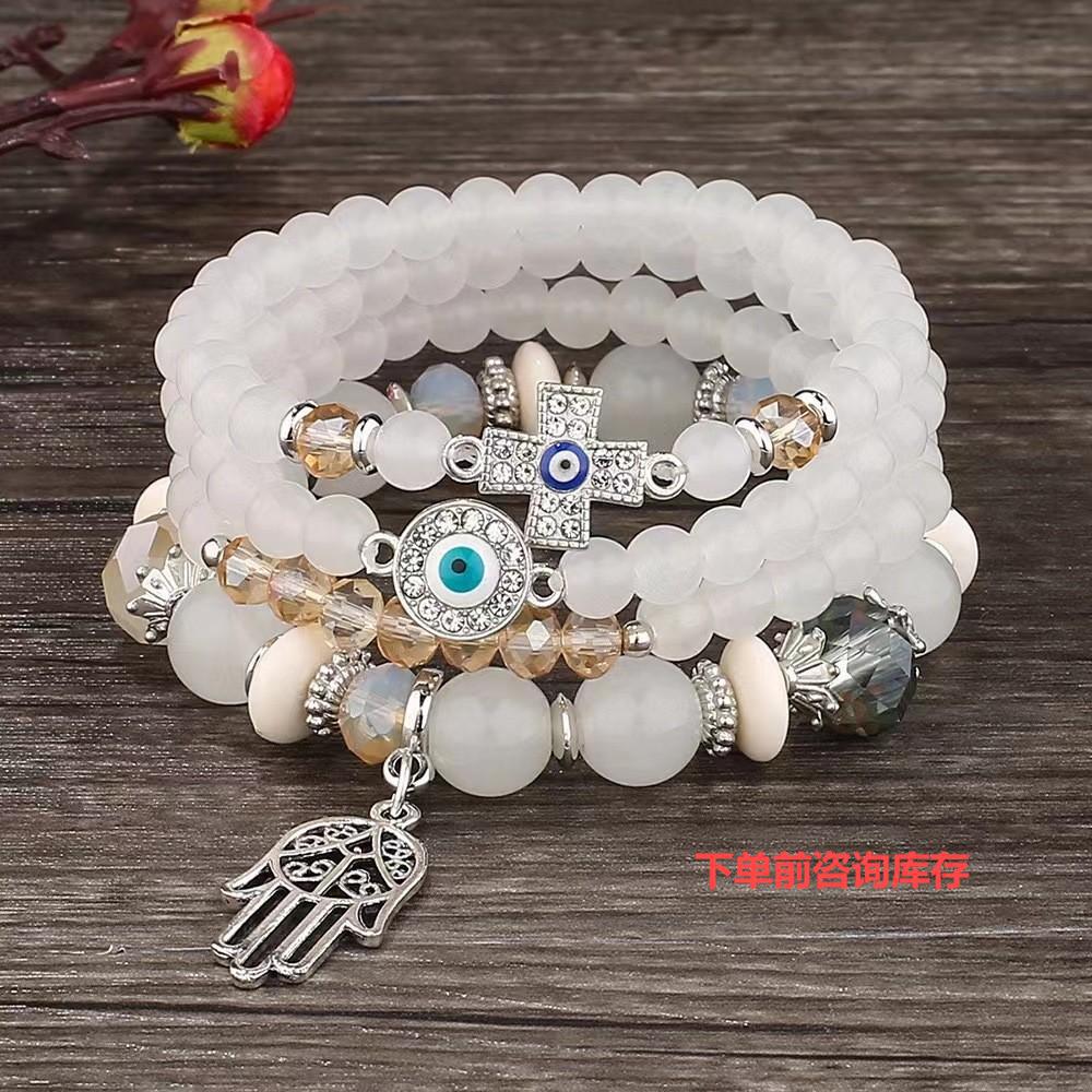 European and American Cross-Border Hot Selling Bohemian Style Cross Devil's Eye Palm Pendant Multi-Layered Crystal Bracelet