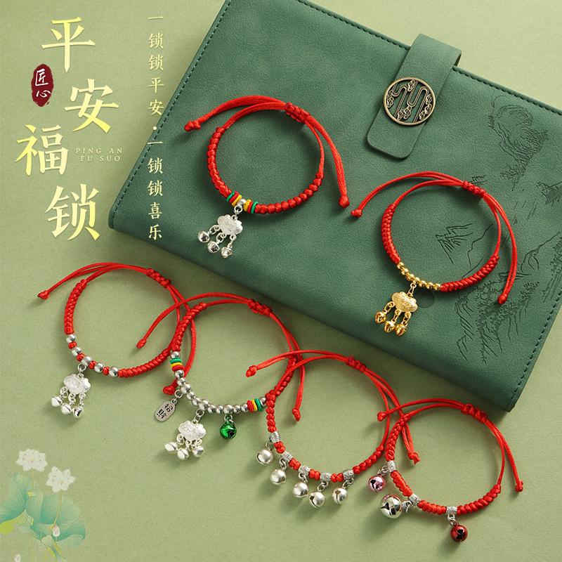 Dragon Boat Festival New Hand-Woven Lucky Lock Red Rope Bracelet for Children and Babies Safe and Long Life Lock Bell Bracelet Wholesale