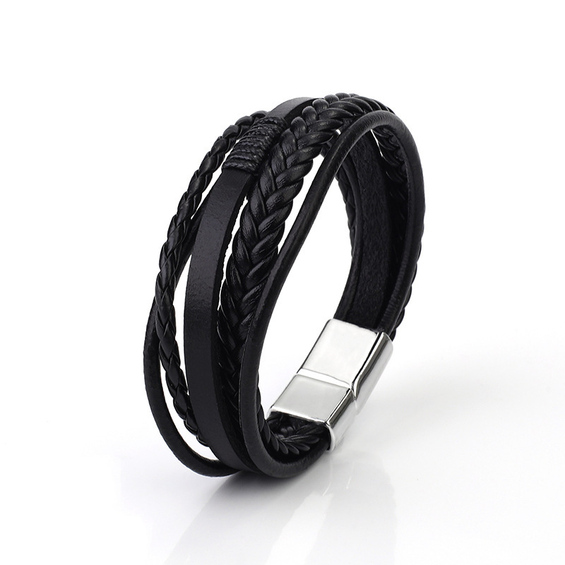 Cross-Border Supply European and American Woven Men's Leather Bracelets Multi-Layer Alloy Magnet Buckles Leather Bracelets Jewelry Wholesale
