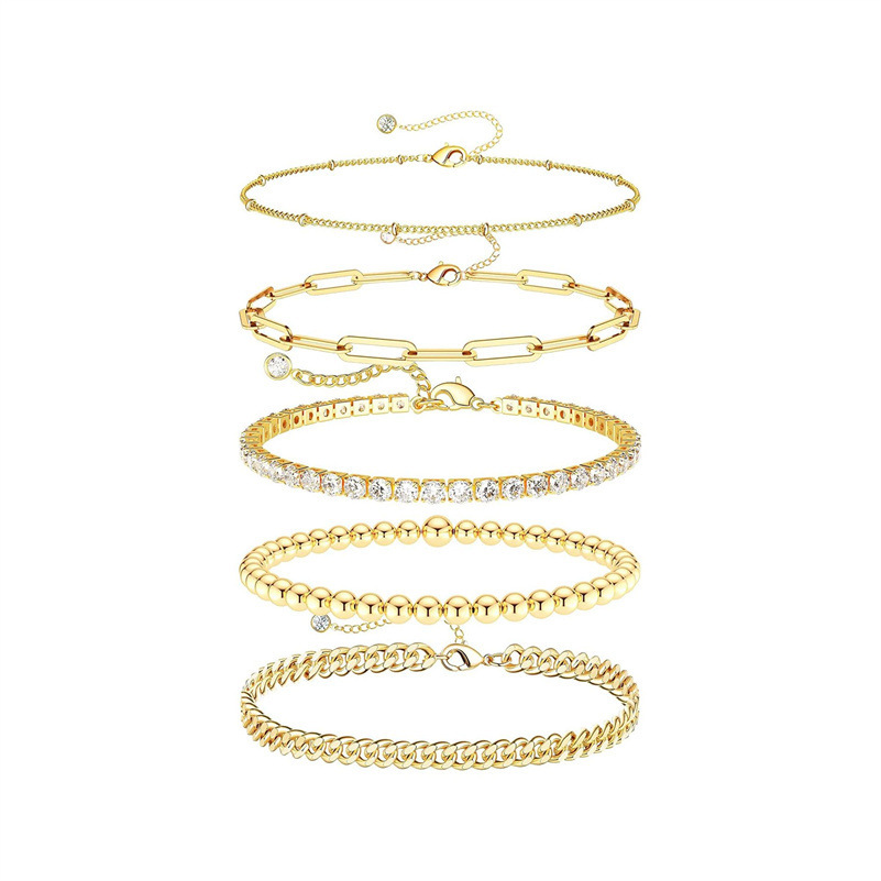 Alloy Multi-piece Bracelet suit Amazon Fashion Simple Bracelet Elegant Metal Cuban Chain Chain