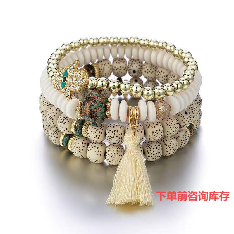 Cross-Border Popular Fashionable Bohemian Style Devil's Eye Palm Turquoise Tassel Elastic Rope Bracelet
