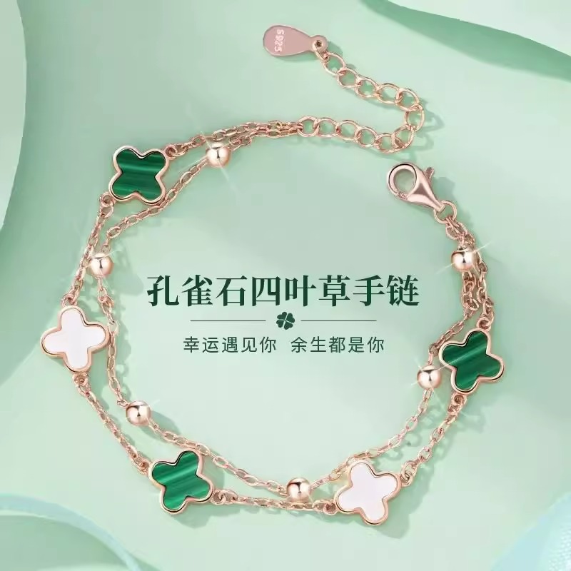 Four-leaf clover malachite bracelet girls ins niche design 2024 new bracelet birthday gift for girlfriend