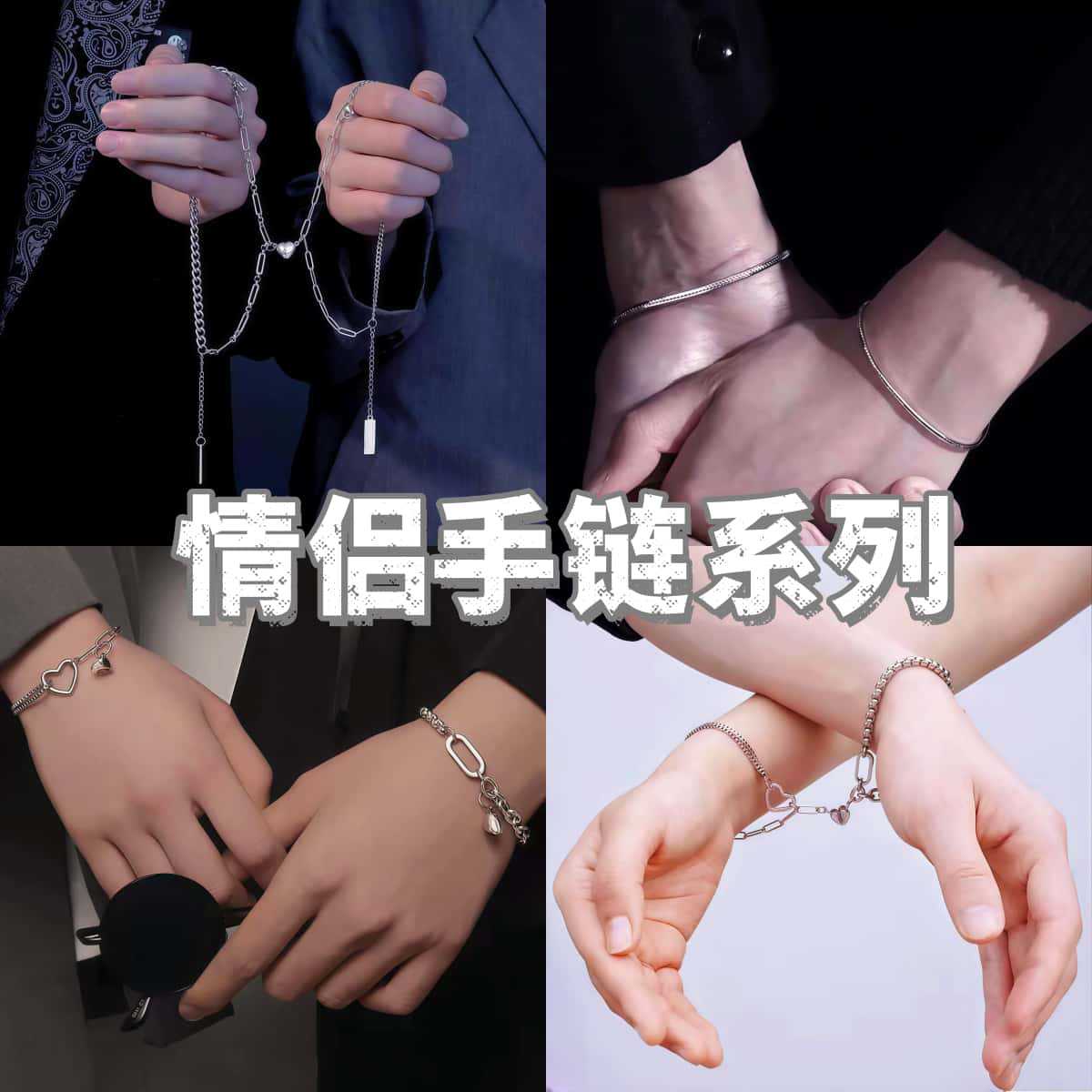 Ins Japanese and Korean Style Personalized Heart Magnetic Titanium Steel Bracelet for Men and Women, Fashionable Student Couple Trendy Jewelry