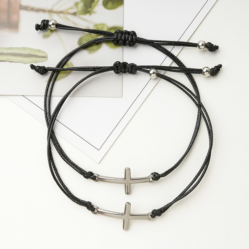 Amazon Hot Selling Hand Woven Cross Bracelet Multicolor Adjustable Rope Cross Gift Bracelet