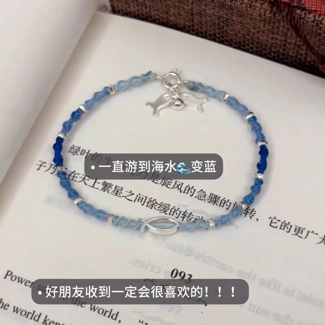 Cold wind hand woven gradient blue small fish hand rope niche design exquisite wind temperament Joker hand jewelry wholesale