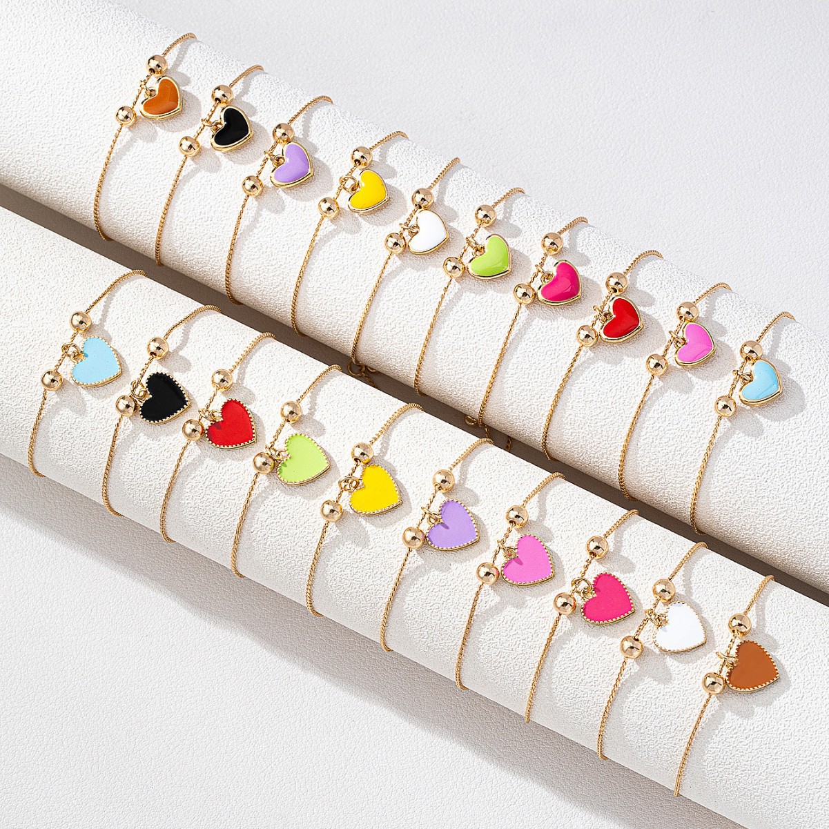 Cross-Border New Pink Oil-Dropped Diamond Mickey Mouse Bracelet DIY Peach Heart Pendant Cute Cartoon Bracelet Wholesale
