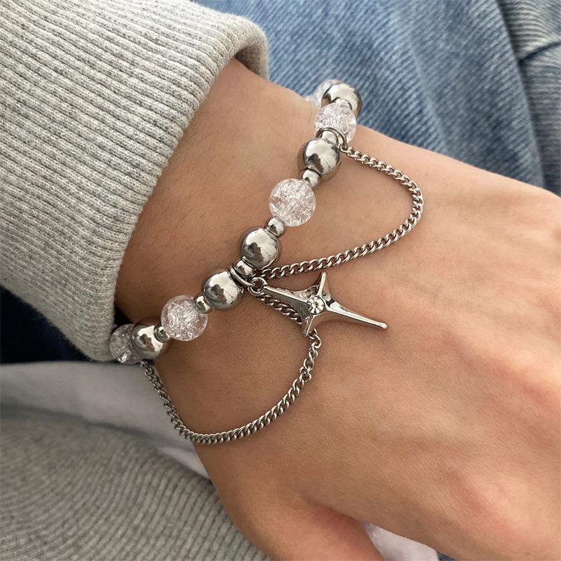 Ice crack beads stitching cross Awn star bracelet female cold style niche design sense ins hip hop fashion cool bracelet