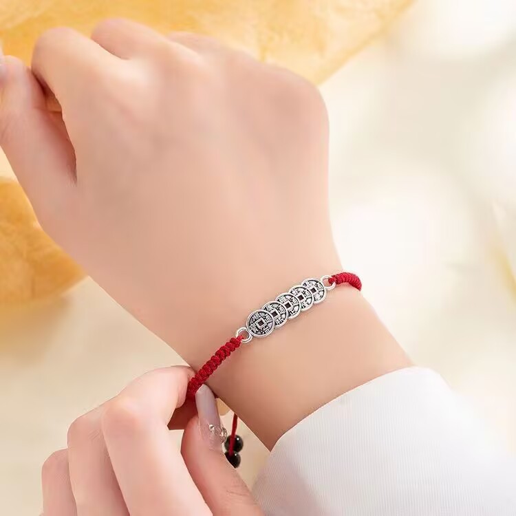 Ins Explosive Fortune Five Emperors Woven Couple's Hand Rope Red Rope Bracelet Chinese Style Vintage Jewelry