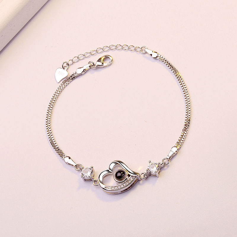 Shake the sound fast hand with oblique heart love bracelet female 100 languages I love you fashion creative projection jewelry
