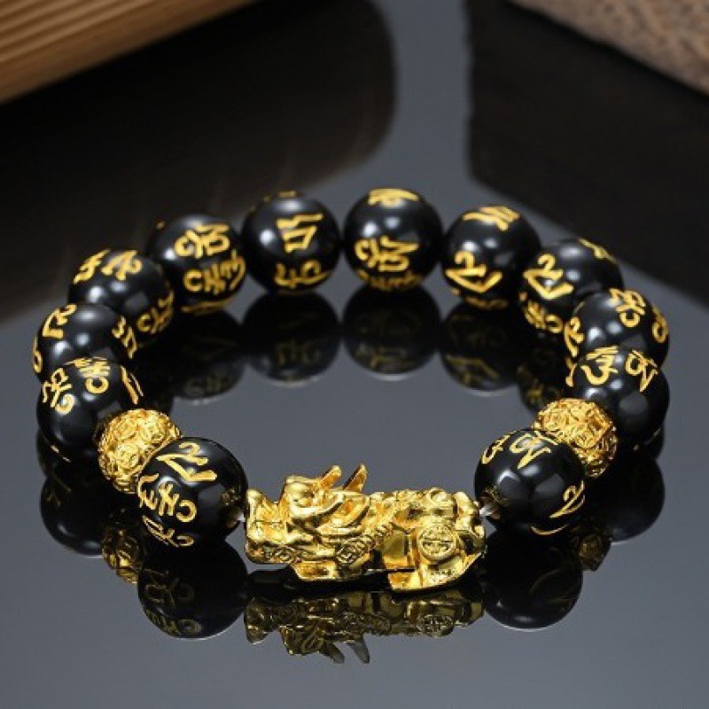 Hot Selling Imitation Obsidian Gold Plated Pixiu Bracelet Six-character Mantra Color Pixiu Bracelet Spot Money Beads Pixiu