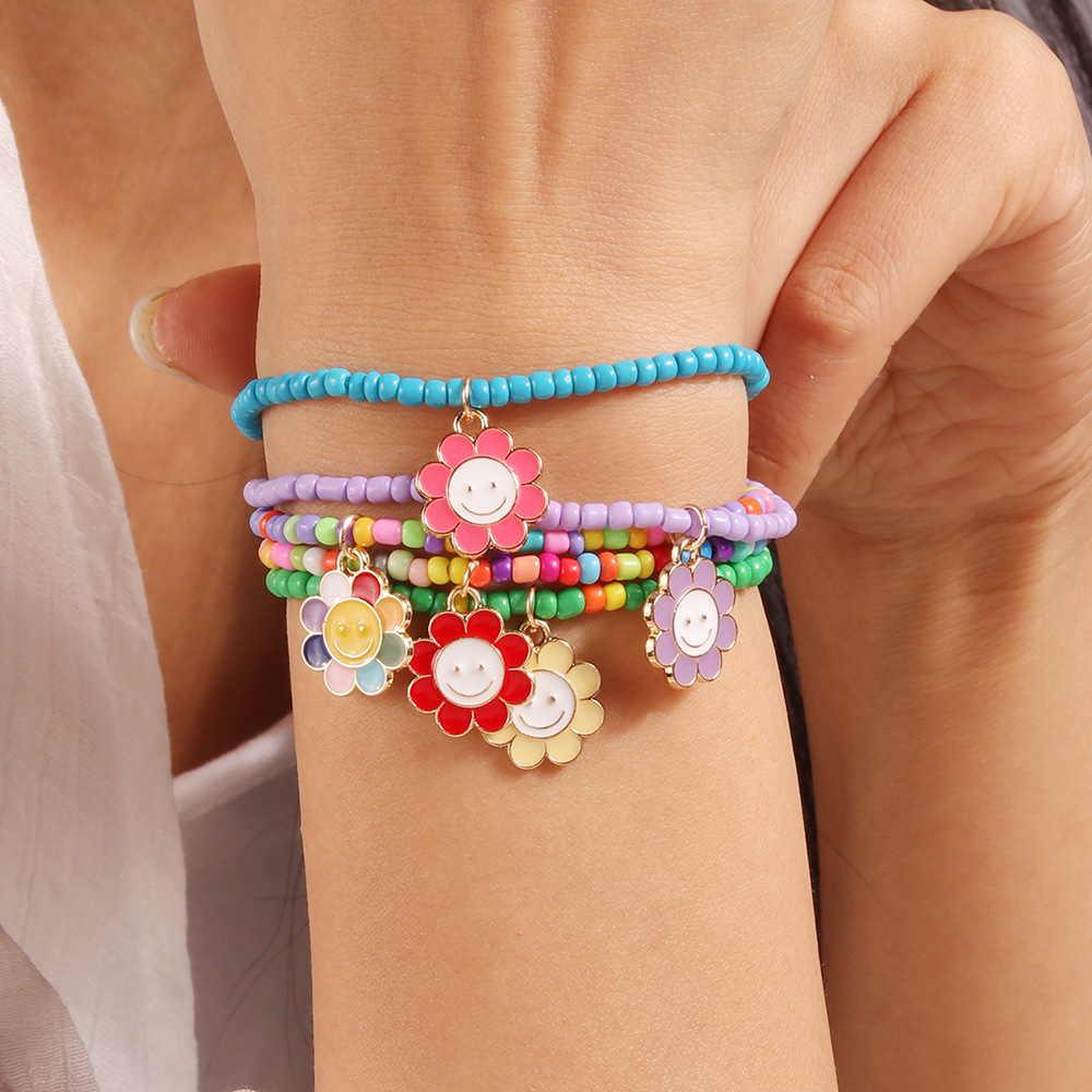 European and American Cross-border Jewelry Sunflower Rice Bead Bracelet Set Cute Smiley Flower Tourist Souvenir Bracelet