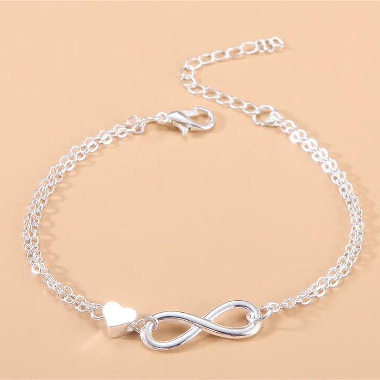 2025 Summer Ins Japanese and Korean Style Versatile Hand Jewelry Alloy Heart 8-Shaped Combination Pendant Adjustable Bracelet Jewelry