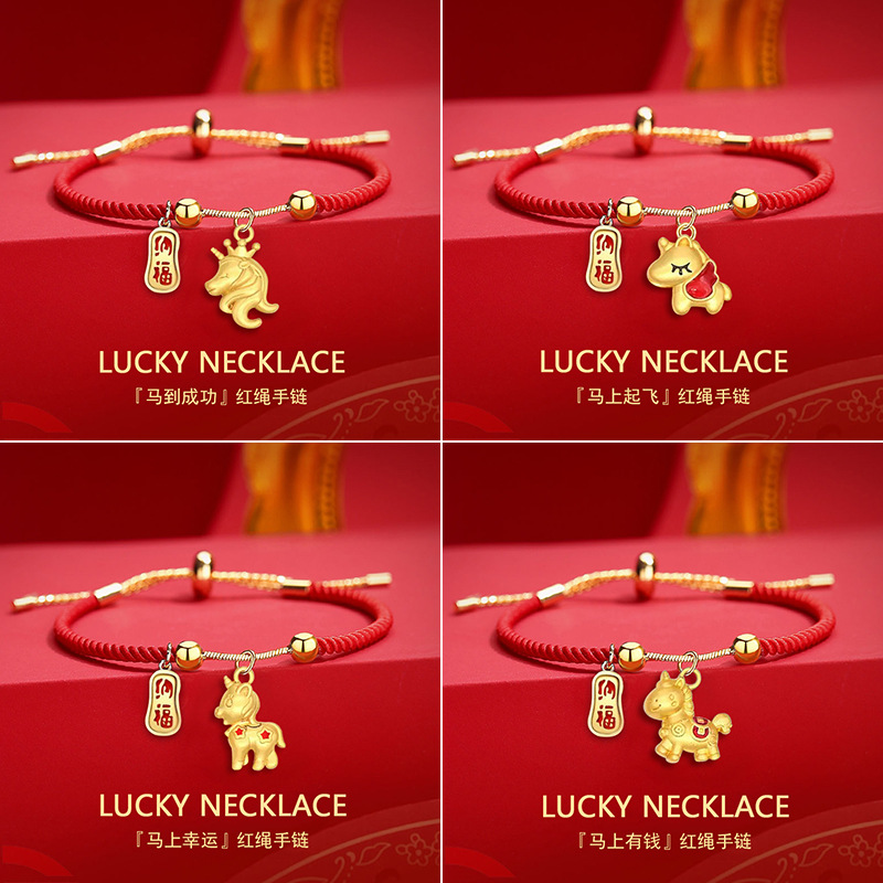 Chinese Style New Zodiac Horse Year Red Rope Bracelet New Year Blessing Fashion Retro Adjustable Bracelet New Year Gift
