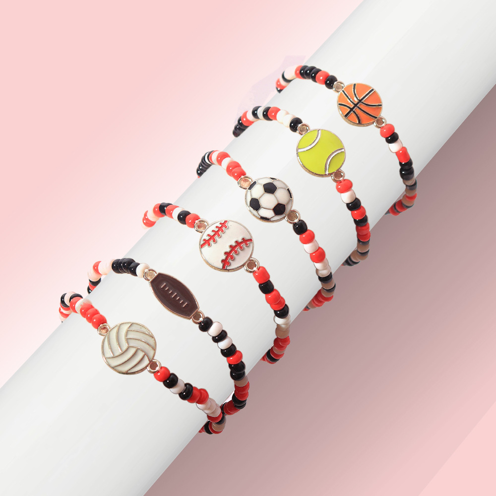 Cross-Border Popular Basketball, Football and Rugby Alloy Bracelet Set Sports Versatile Handmade Beaded Elastic Bracelet