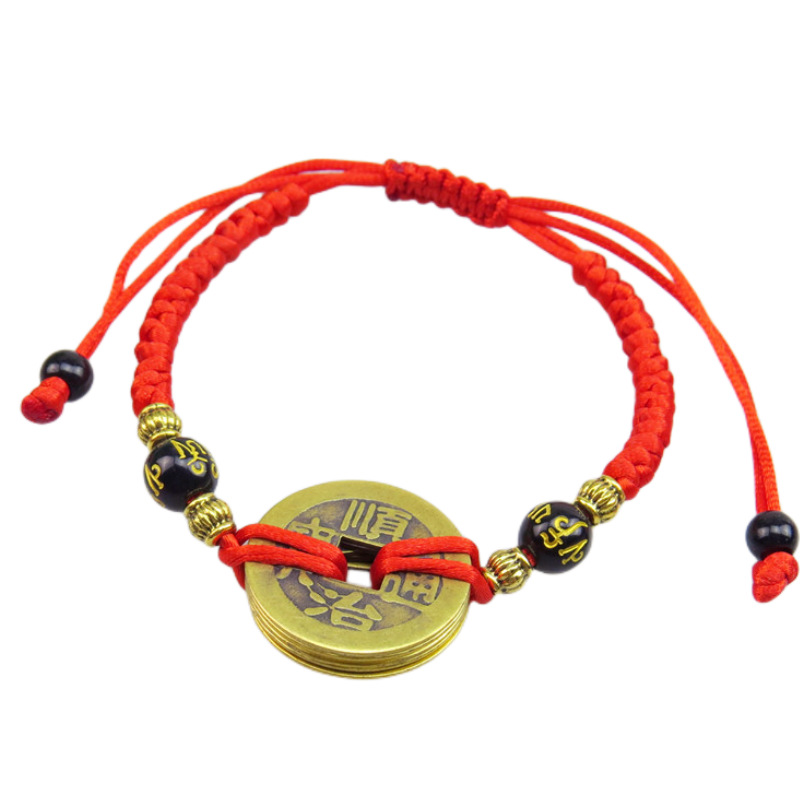 Five Emperor coin bracelet woven bracelet pure copper coin woven five Emperor Qian Long copper coin bracelet red rope woven bracelet