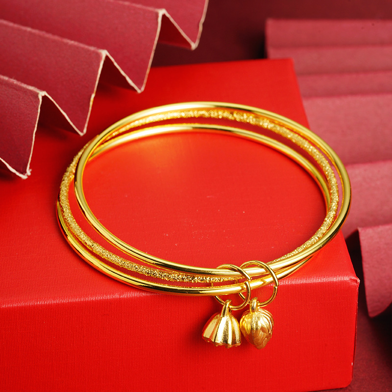 Vietnamese Ancient Sand Gold Bracelet That Does Not Fade for a Long Time, Three Generations of Lotus Bracelet, Women's Brass Alloy Artificial Jewelry