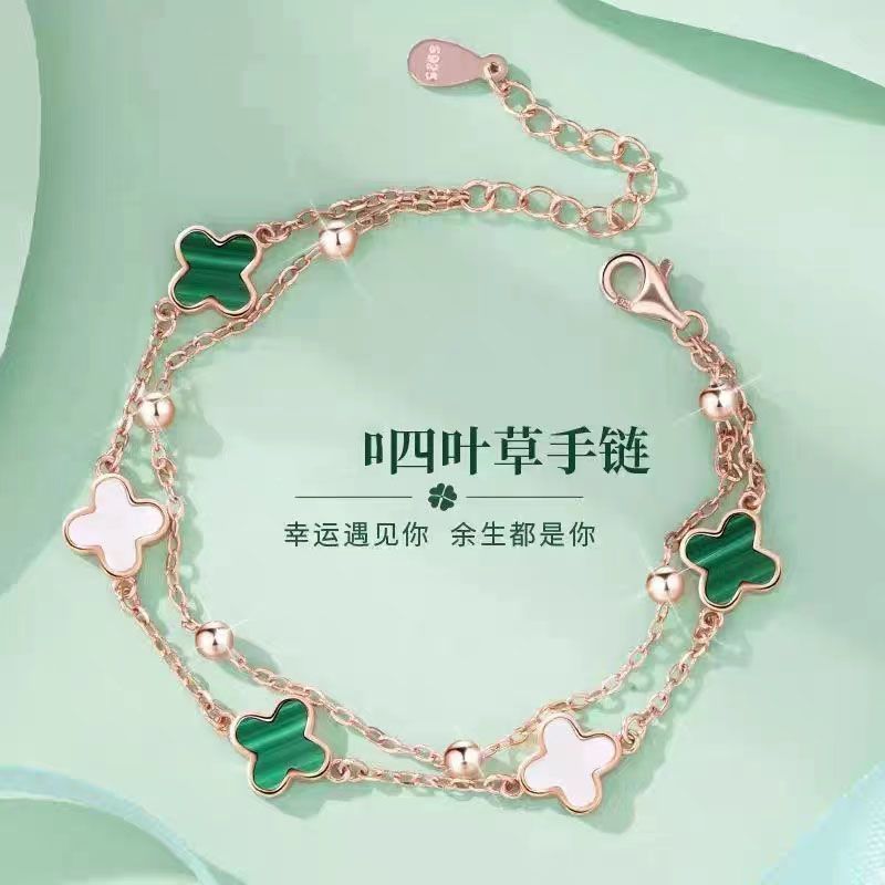 Malachite Four-leaf Clover Bracelet for Girls Red Agate All-match Bracelet Bracelet Feeling Birthday Gift for Girlfriend