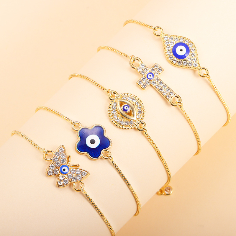 European and American Cross-Border New Devil's Eye Bracelet Alloy Pendant Adjustable Pull-Out Blue Eye Bracelet Ready for Sale