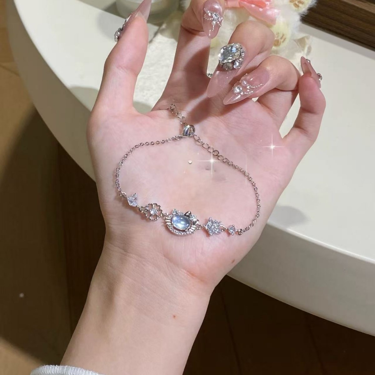 [Lucky Kitty Star] Imitation Aquamarine Alloy Zircon Bracelet for Women, New Niche Exquisite High-End Jewelry Accessories