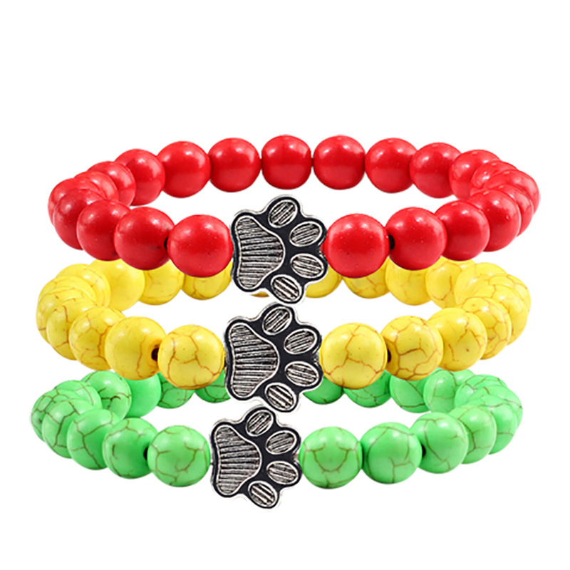 European and American Turquoise Black Dog Paw Bracelet Frosted Hand Ornaments Colorfulful Turquoise Head Bracelet Alloy Beaded Bracelet Elastic Rope