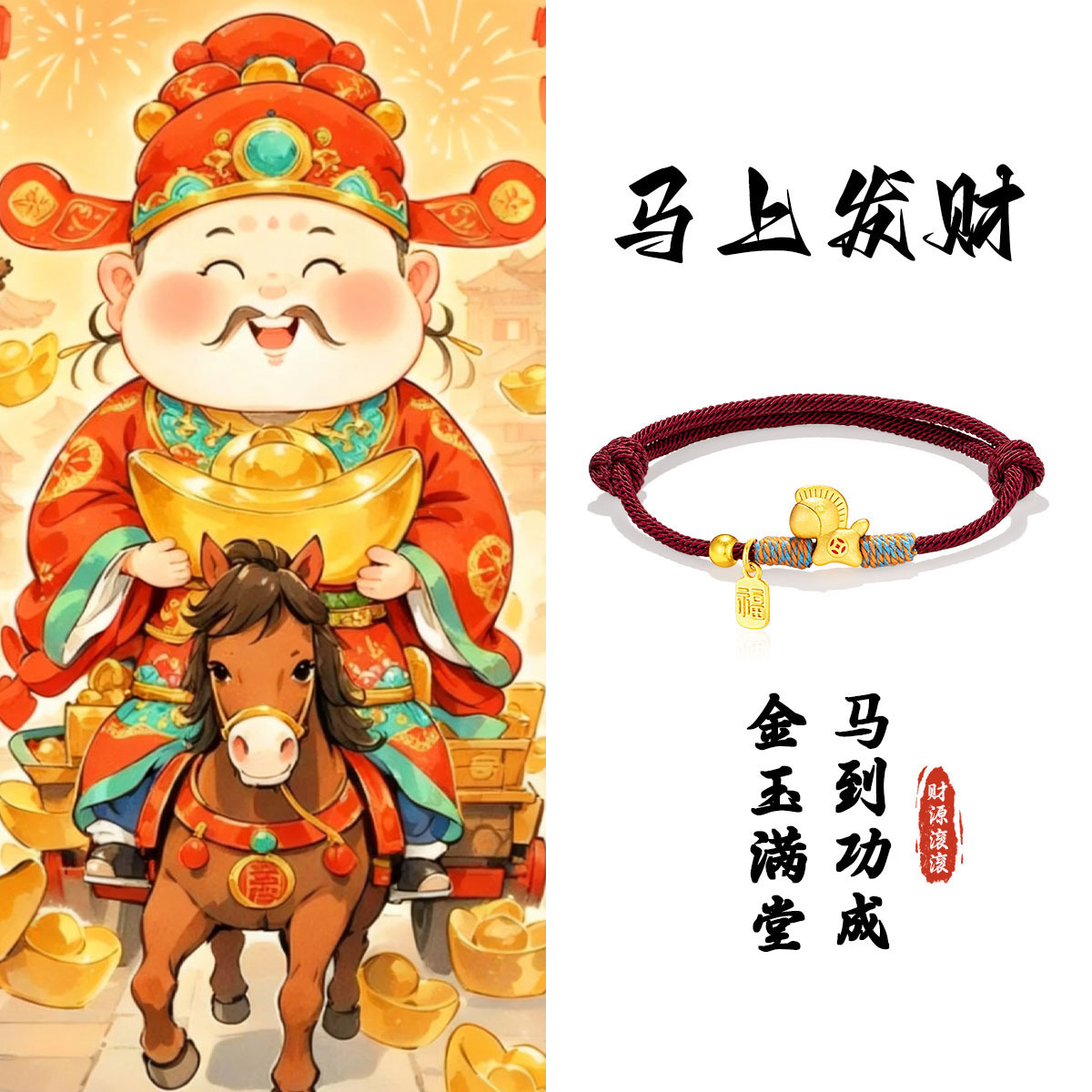 Good Luck and Get Rich Soon, Golden Pony Bracelet, Year of the Horse, Zodiac Year, Red Rope Bestie Bracelet, Female New Year Gift