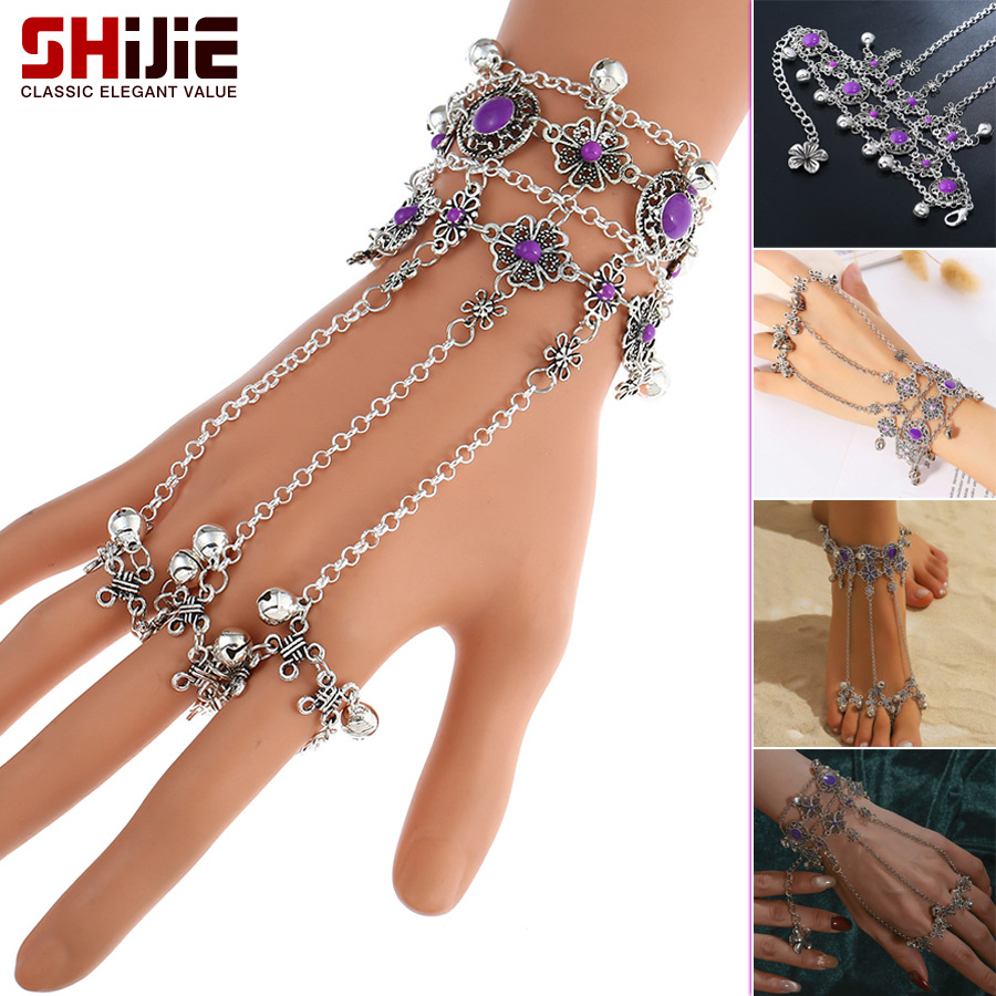 Ancient Style Cosplay Purple Painted Oil Mittens Bracelet Long Moon Jinming Bracelet Zixia Bell Bracelet Dance Accessories