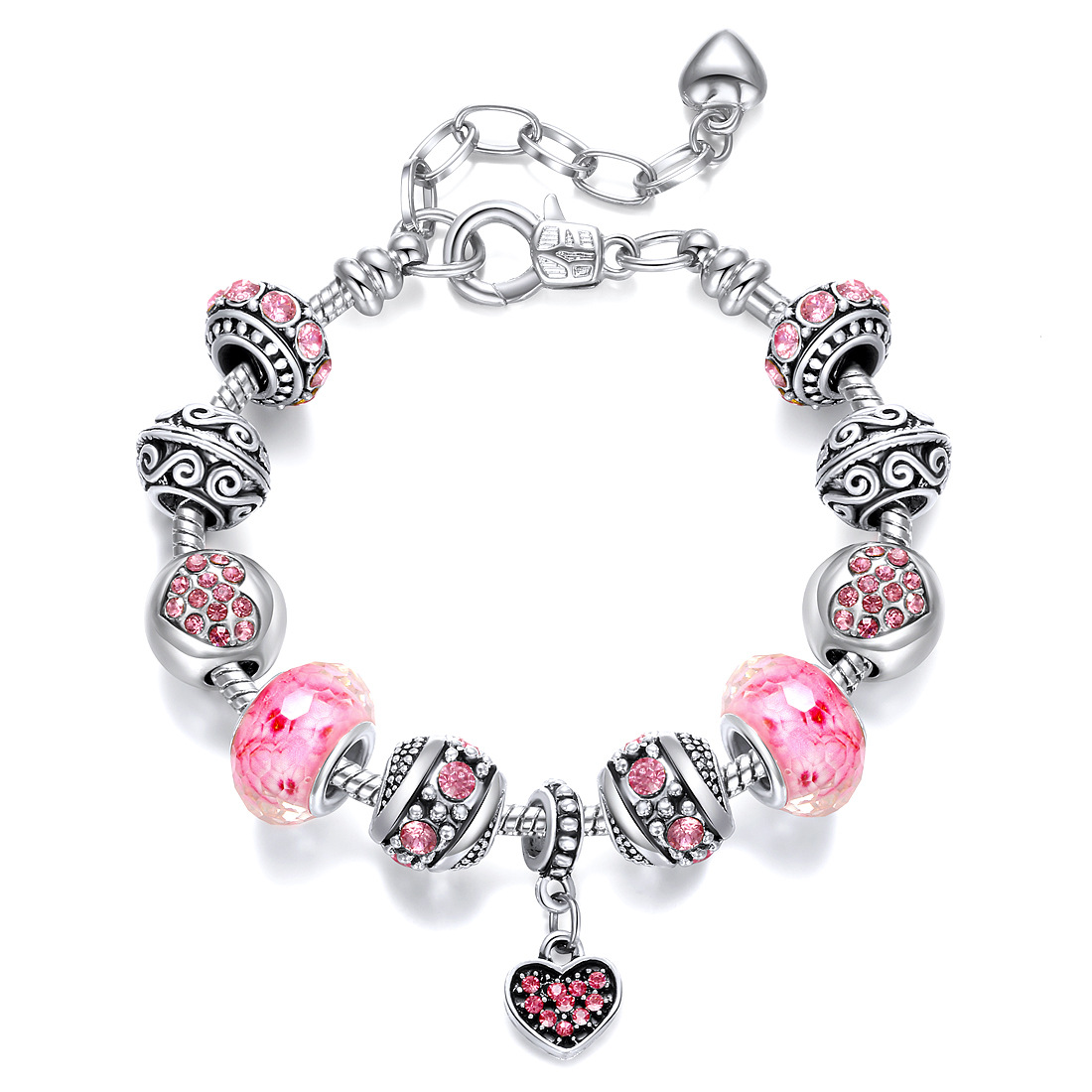 Pink Acrylic Alloy Silver Plated Panjia Large Hole Beads Bracelet ebay Amazon AliExpress