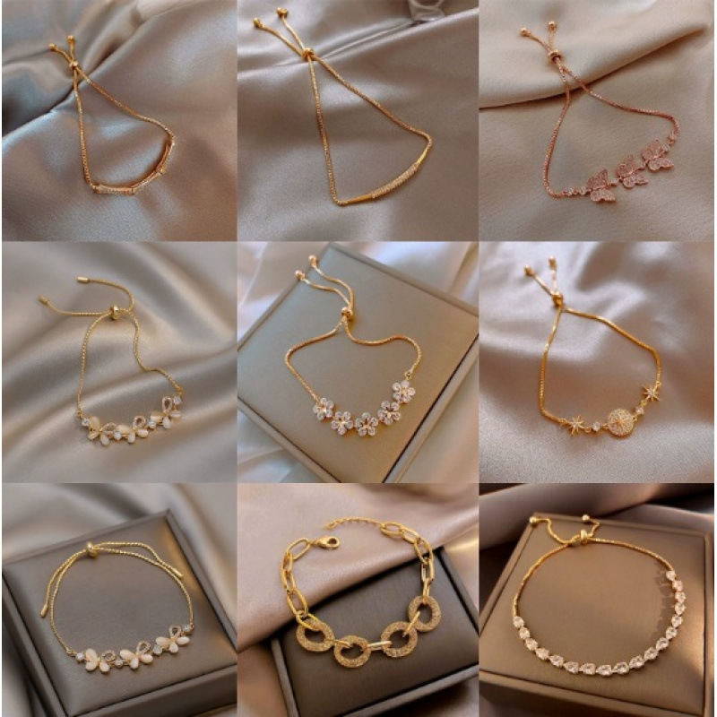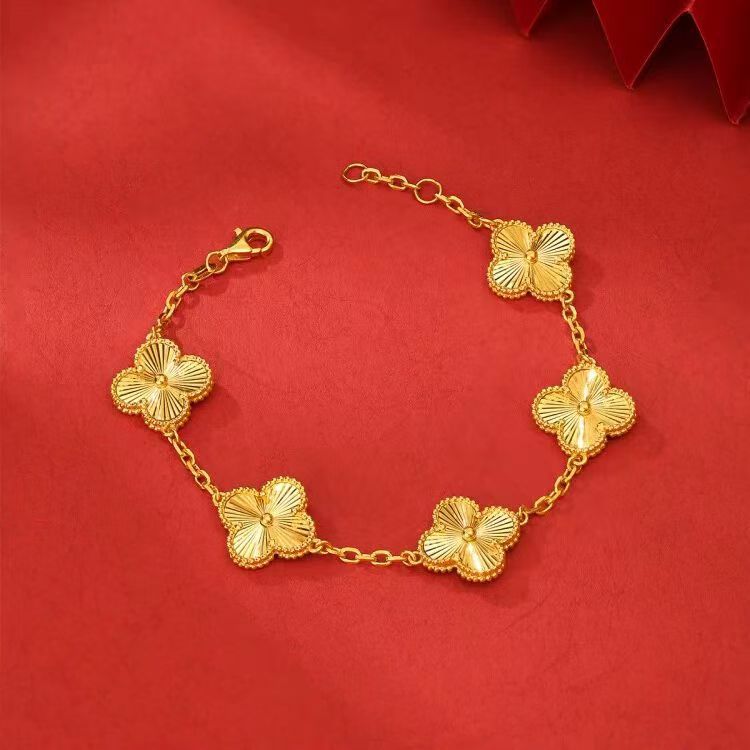 Live Supply of Large Quantities of Imitation Gold Four-Leaf Clover Five-Leaf Bracelets, Simple, Fashionable and Versatile Flash Gifts