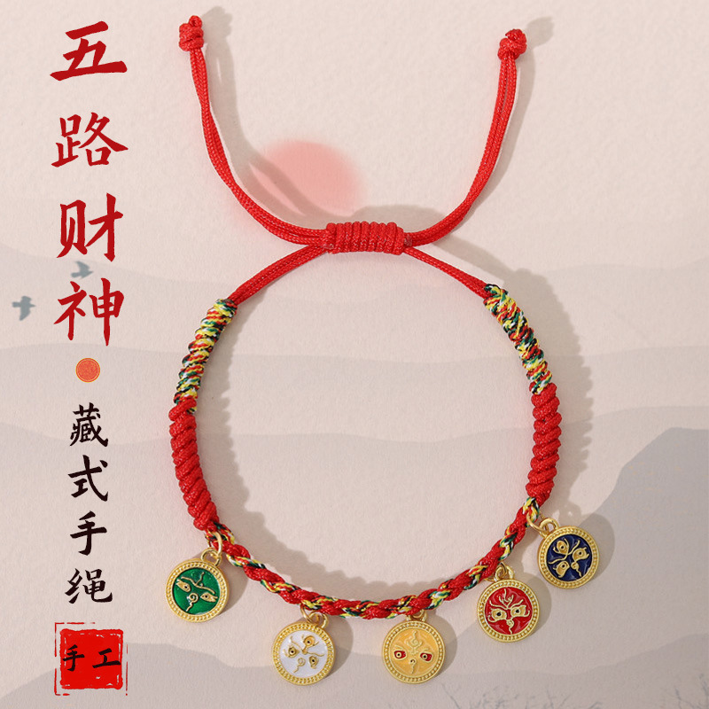 New Benmingnian Five-way God of Wealth Red Rope Bracelet Hand-woven Hand Rope for Men and Women Couple Ethnic Style Bracelet Wholesale