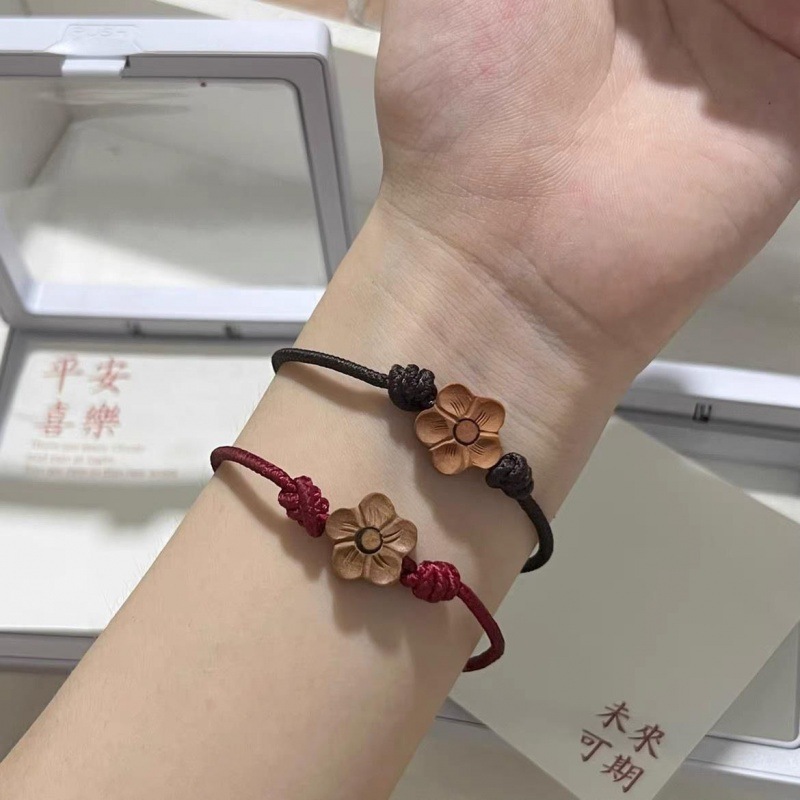 2024 New Little Red Book Peach Blossom Woven Hand Rope Peach Wood Blossom Carving Handmade Lucky Gift