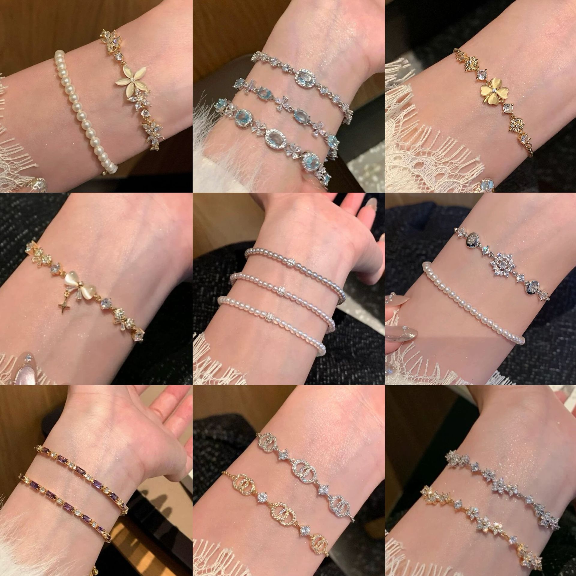 Zircon Flower Geometric Bracelet, Light Luxury and High-End Bracelet, Fashionable and Exquisite Elegant, Versatile Bracelet Design, Niche Design