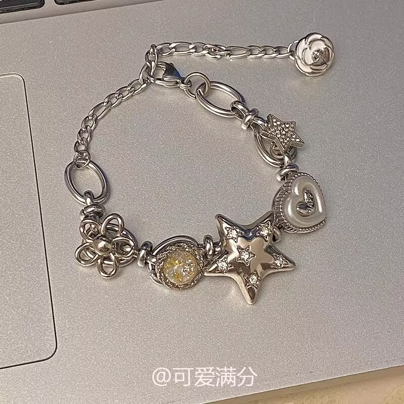 Close to the Stars Heavy Industry Dot Diamond Star Love Button Bracelet Korean Style Light Luxury Metallic Light Luxury Hand Jewelry for Women