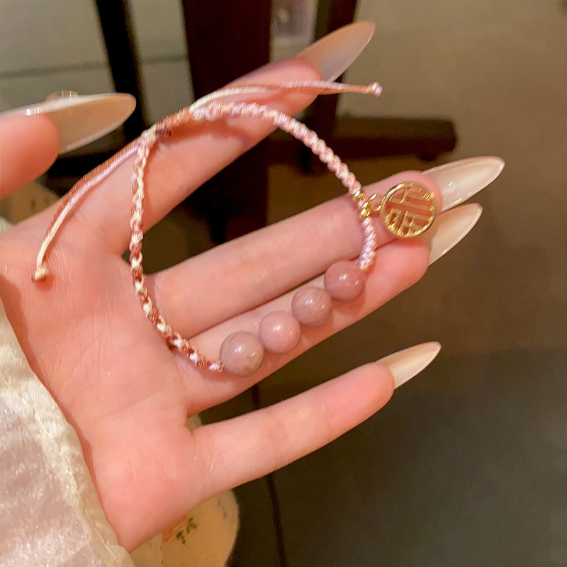 New Chinese-style Fu Brand Woven Bracelet Women's 2024 Light Luxury Niche High-end Retro Elegant Adjustable Hand Rope Bracelet