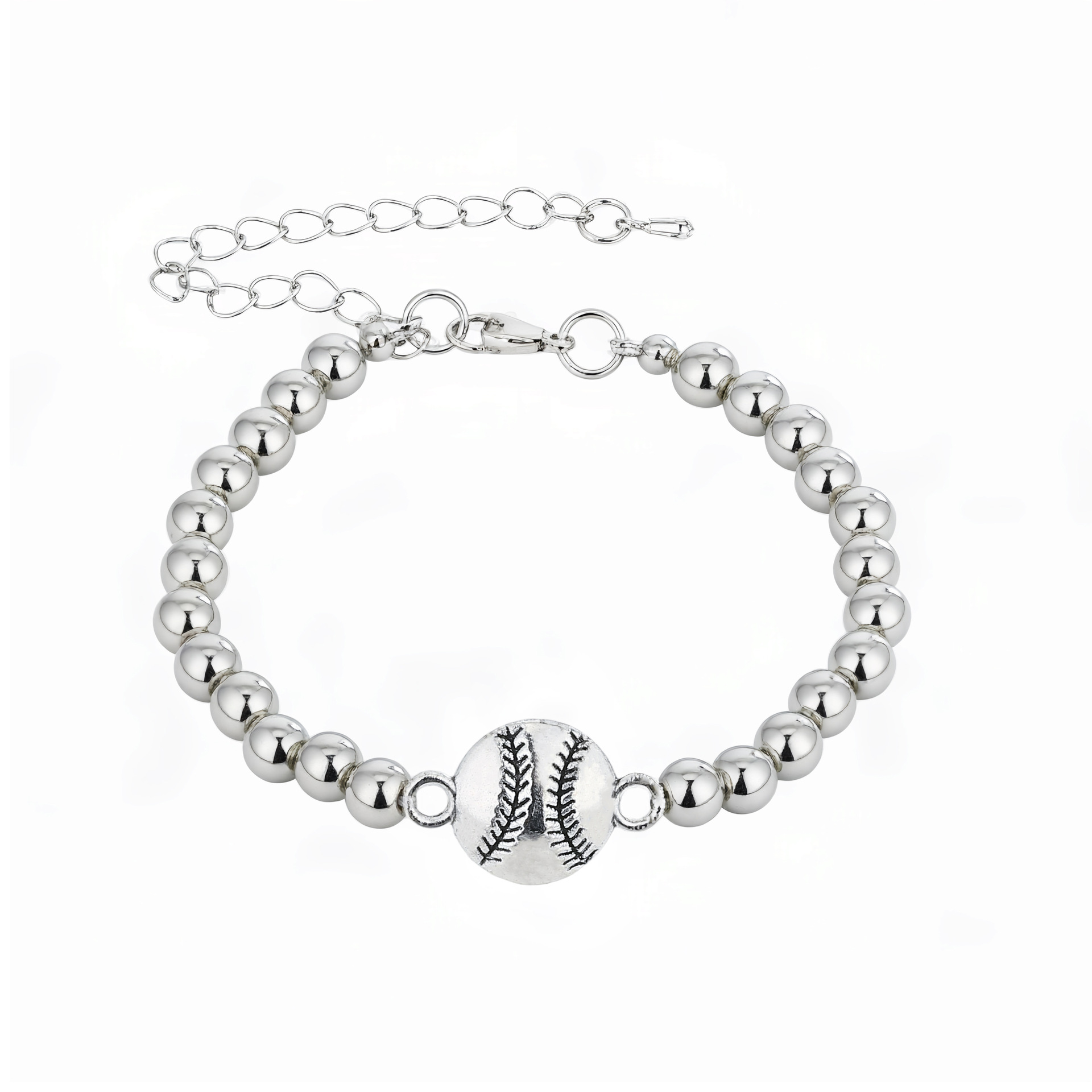Amazon New Product 6Mmccb White K Beads Alloy Baseball Pendant Unisex Lobster Clasp Adjustable Bracelet