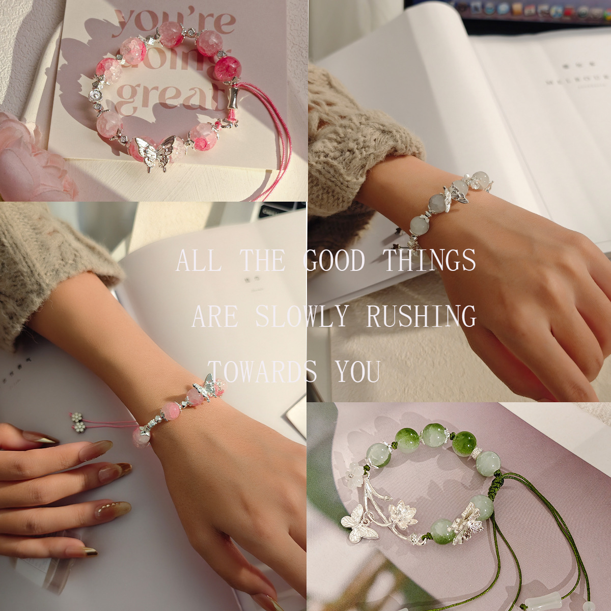 European and American Cross-border New Chinese Style Ancient Style Cold Feeling Butterfly Flower Bracelet Retro National Style Niche Design Beaded Jewelry