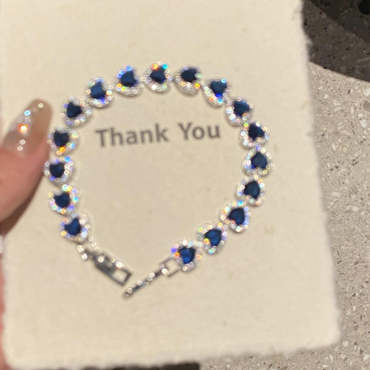 [Many Stars] Dark Blue Heart Full of Diamond Zircon Bracelet, Retro Cool Feeling, Super Flash Diamond French Palace Style