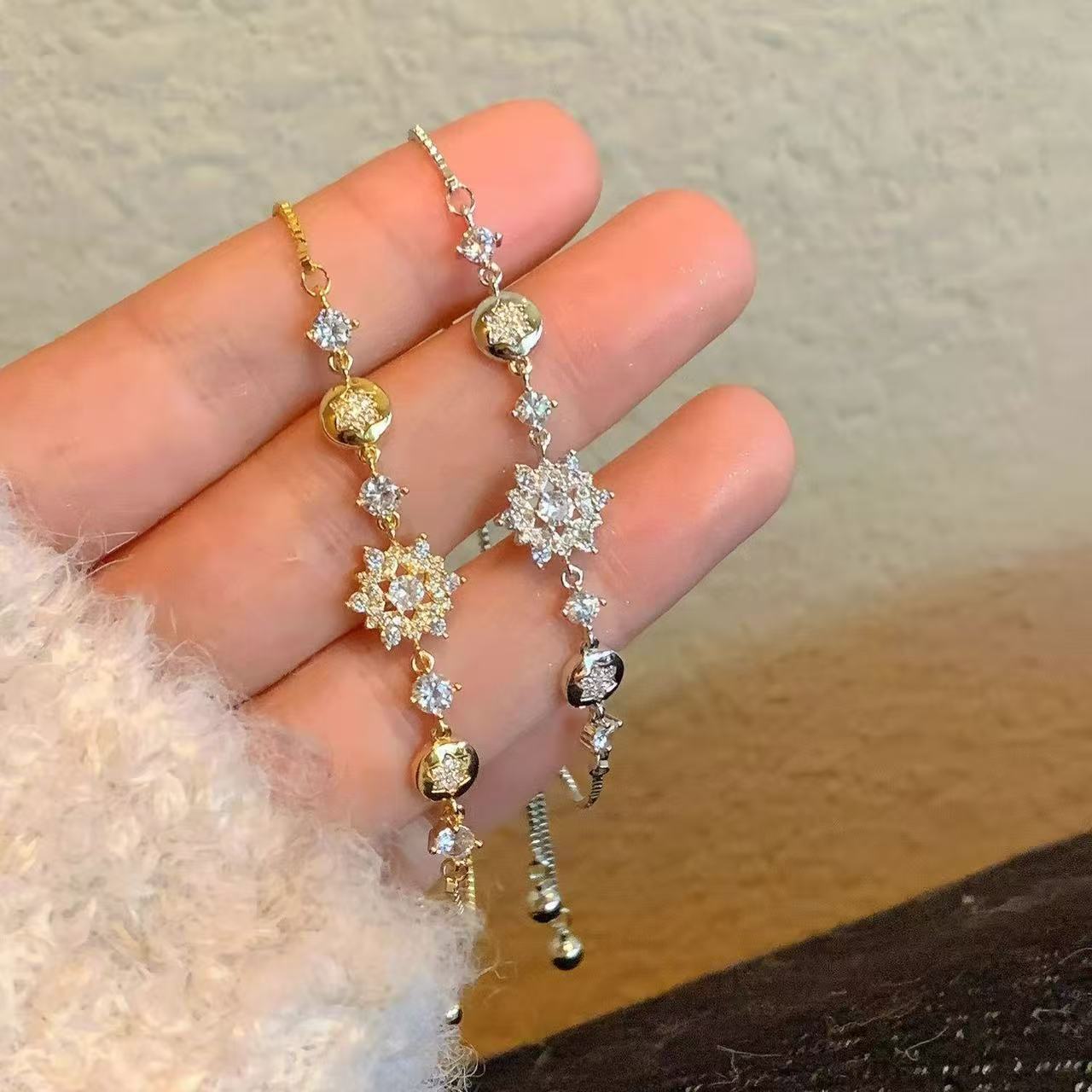 Winter Snowflake Bracelet for Women Ins Retro Exquisite Niche Design High-Gloss Zircon Adjustable Pull-Out Bracelet