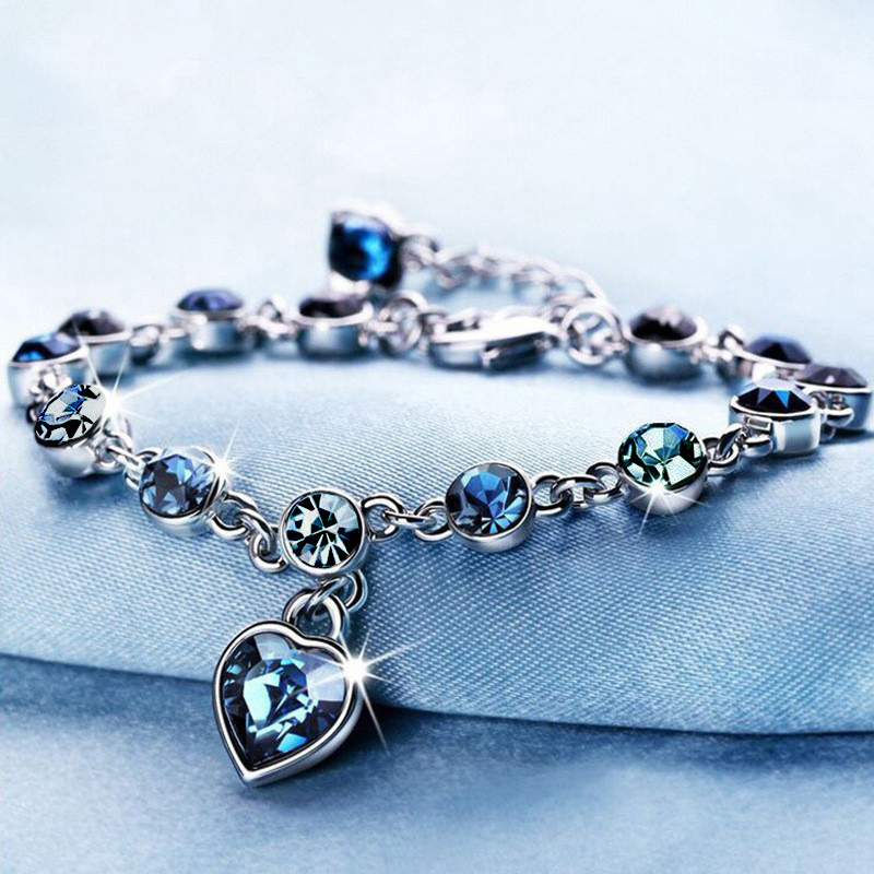 Cross-border hot fashion ocean heart bracelet high-end jewelry micro inlaid zircon crystal bracelet bracelet jewelry wholesale