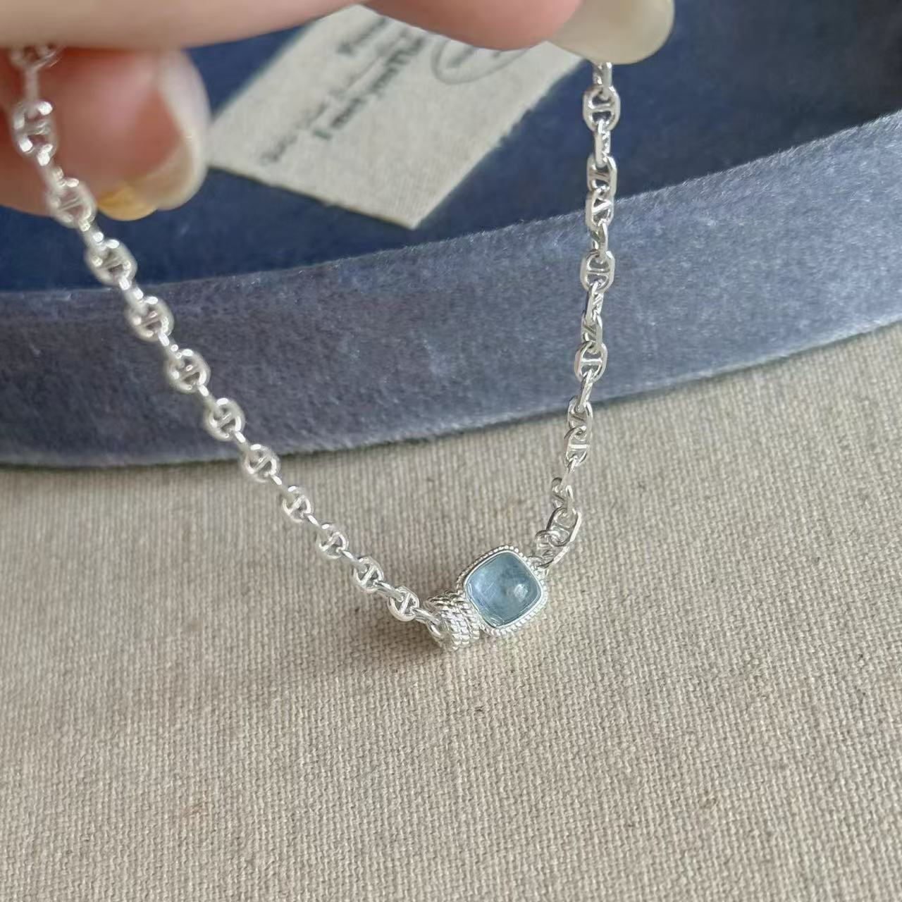 Small Sugar Cube High-End Aquamarine Inlaid Pig Nose Chain Girls' Bracelet Fresh and Versatile Travel Bracelet Trendy Treasure
