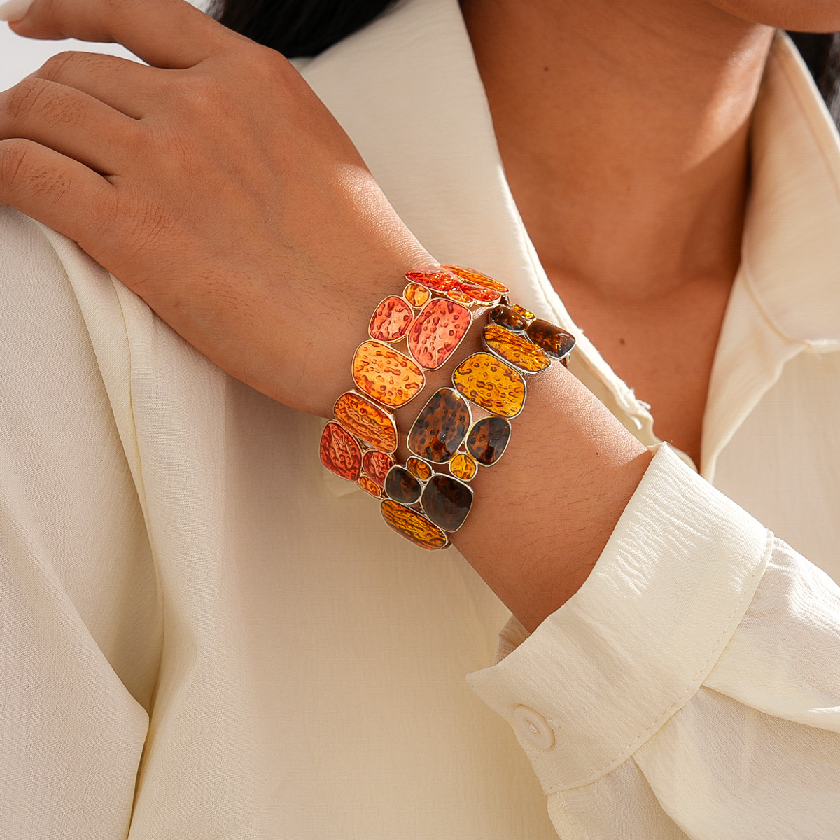 European and American Ethnic Style Irregular Geometric Patchwork Elastic Bracelet Autumn and Winter Retro Cross-Border High-End Jewelry for Women