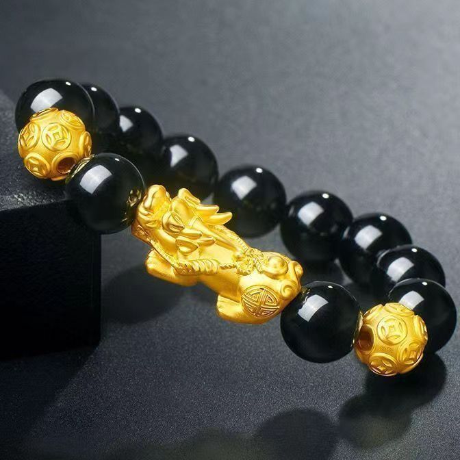 Pixiu Obsidian Bracelet Men's Buddha Beads Transfer Beads Gold Obsidian Women's Bracelet 520 Couple Gift
