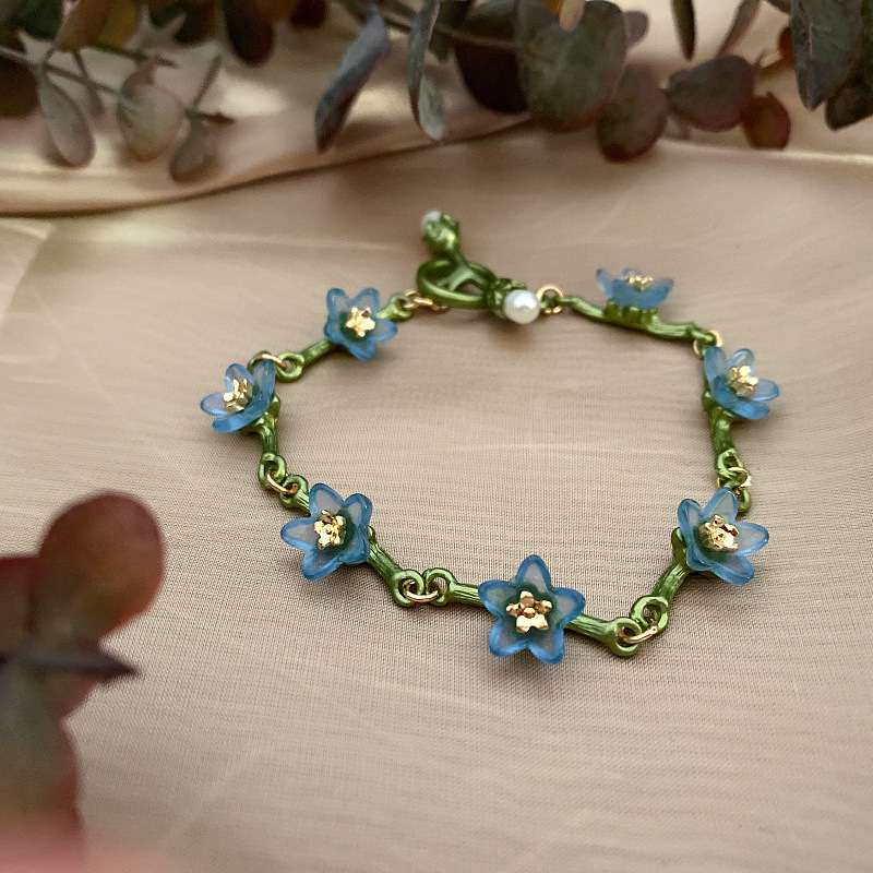 New wholesale vintage forest pastoral style forget-me-not freshwater pearl bracelet exquisite elegant temperament fashion bracelet