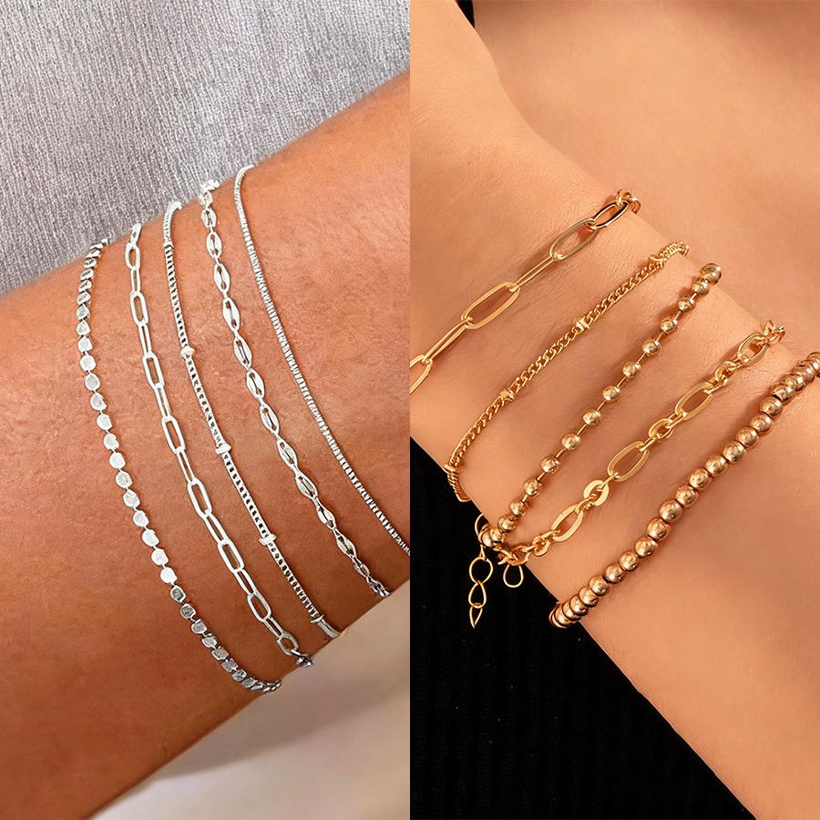 European and American Cross-Border Fashion Bracelet Set, Trendyy and Personalized Versatile Chain Bracelets, Simple Stacking of Multiple Sets of Jewelry