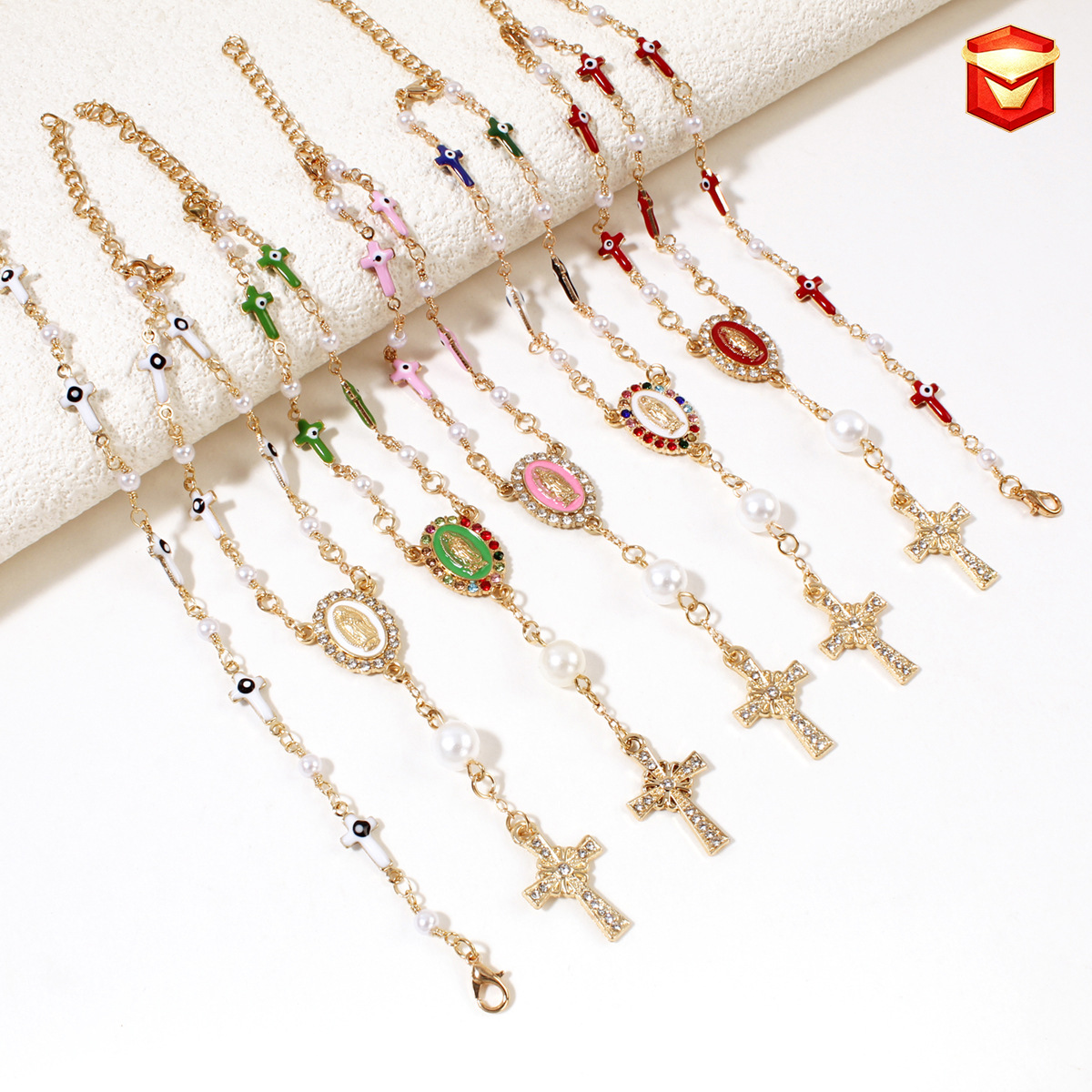 Amazon Aliexpress Hot Selling Evil Eye Cross Bracelet Virgin Mary Diamond Baptism Prayer Bracelet