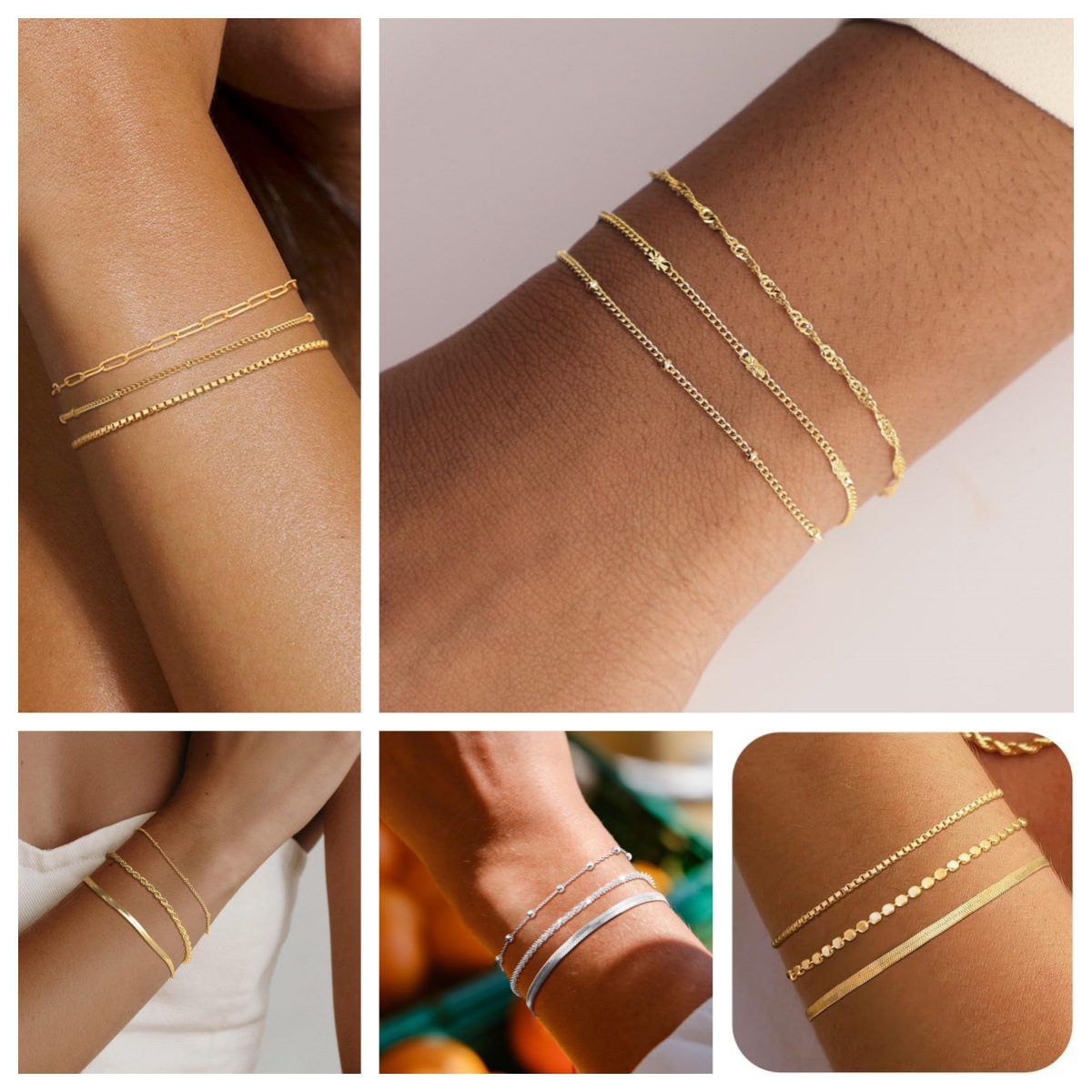 European and American Cross-Border Bohemian Style Alloy Bracelet, Elegant and Personalized Blade Snake Bone Stacking Bracelet Three-Layer Set for Women