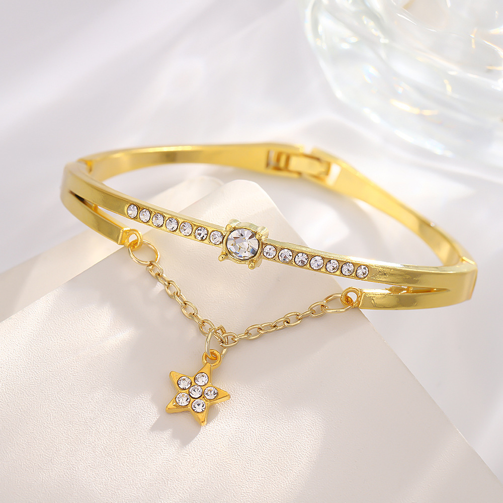 Fashionable Five-Pointed Star Bracelet with Double-Layer Pendant and Diamond Inlay, French Minimalist Style, Cross-Border Jewelry Manufacturer, Rose Gold