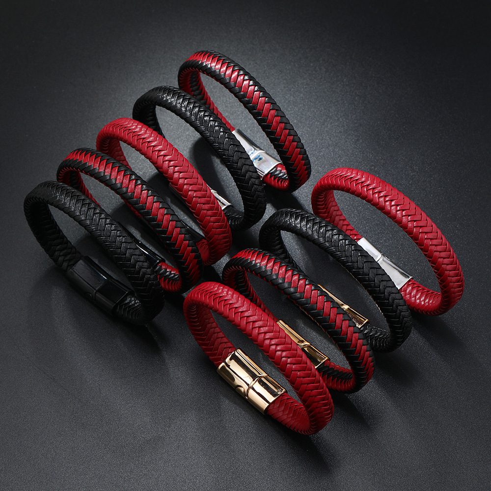 European and American new simple fashion leather woven bracelet alloy magnetic buckle retro men's bracelet jewelry