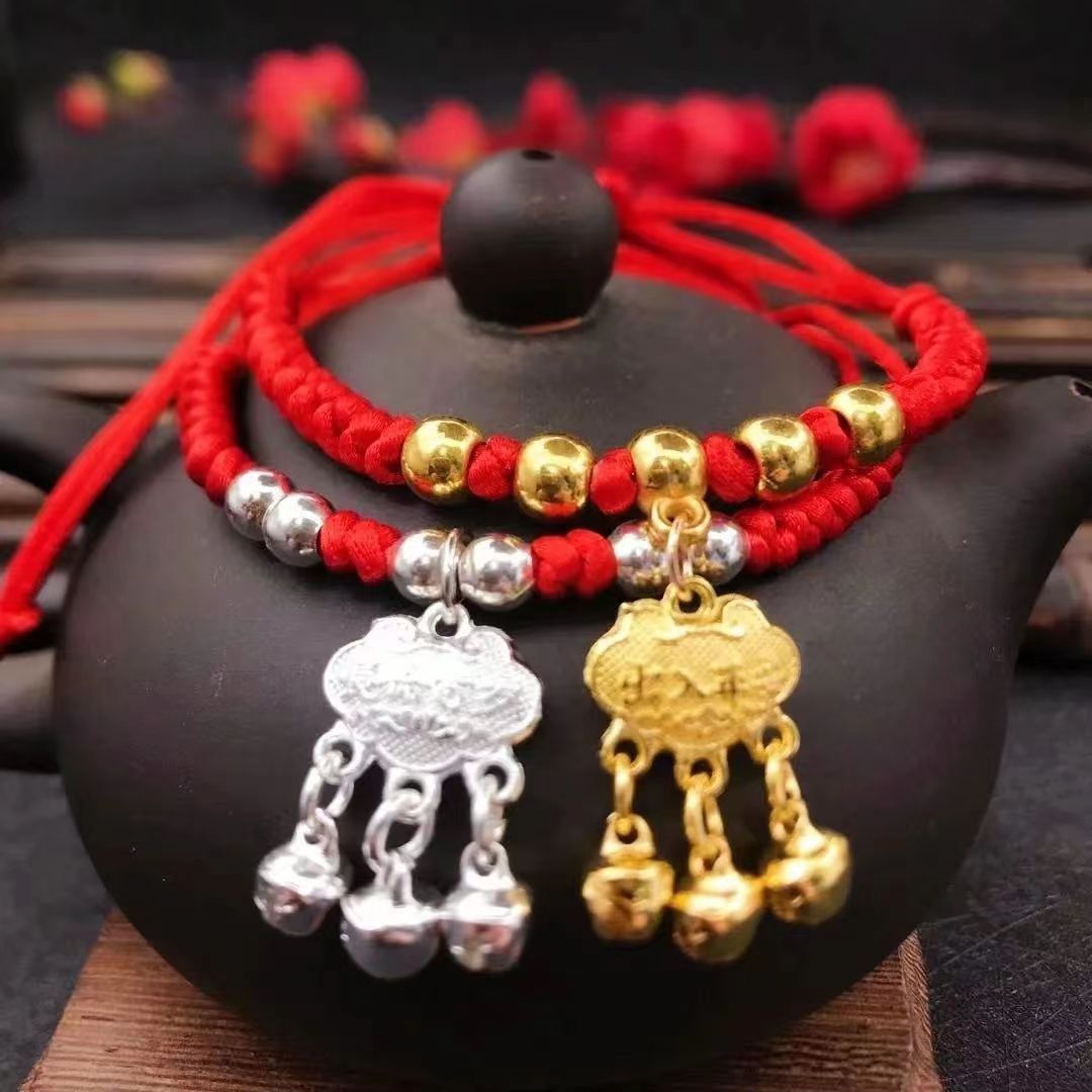 Antique Long Life Lock Bracelet Hand Woven Children's Bell Red Rope Men's and Women's Jewelry Dragon Boat Festival Baby Hand Rope Gift