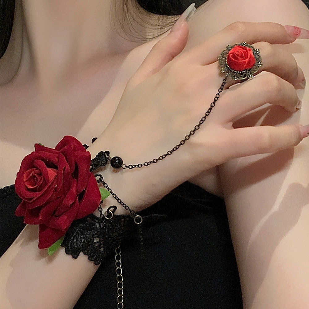 Punk Lace Wrist Vintage Gothic Accessories Bracelet Lolita Hand Gloves Halloween Rose Red